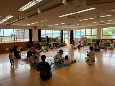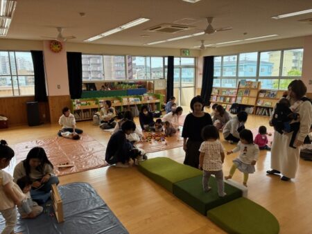 今日は今年度に入ってはじめてのこっこぴよぴよサークルでしたが、たくさんの方にご参加いただきました。20組近く来ていただき、ホールで自己紹介やミュージックケアをして楽しみましたよ。天気がいいのでアンパンマン広場で遊んだりと、みんな楽しんでいってくれたようです。また来月もぜひ遊びに来てくださいね!!