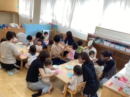 今日は乳児クラスの参観日でした。お忙しい中たくさんの保護者の方にご参加いただきました、ありがとうございました。子どもたちもみんないい笑顔で楽しそうでしたー。